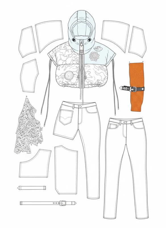 speculative sewing pattern – This step can be done with AI generative models in a sketch like approach: as there is almost no precise training data, that connects photo information with cutting patterns, this is almost speculative. With proper trained models, this can reach a pretty precise level of detail.